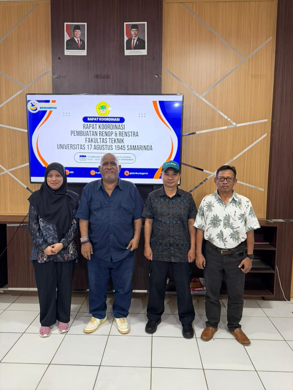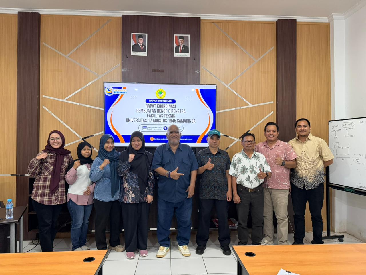 Fakultas Teknik Universitas 17 Agustus 1945 Samarinda menggelar rapat koordinasi penyusunan Rencana Strategis (Renstra) dan Rencana Operasional (Renop) bersama empat program studi, yakni Program Studi Teknik Sipil Untag Samarinda, Program Studi Arsitektur Untag Samarinda, Program Studi Magister Teknik Sipil Untag Samarinda, dan Program Studi Perencanaan Wilayah dan Kota Untag Samarinda.