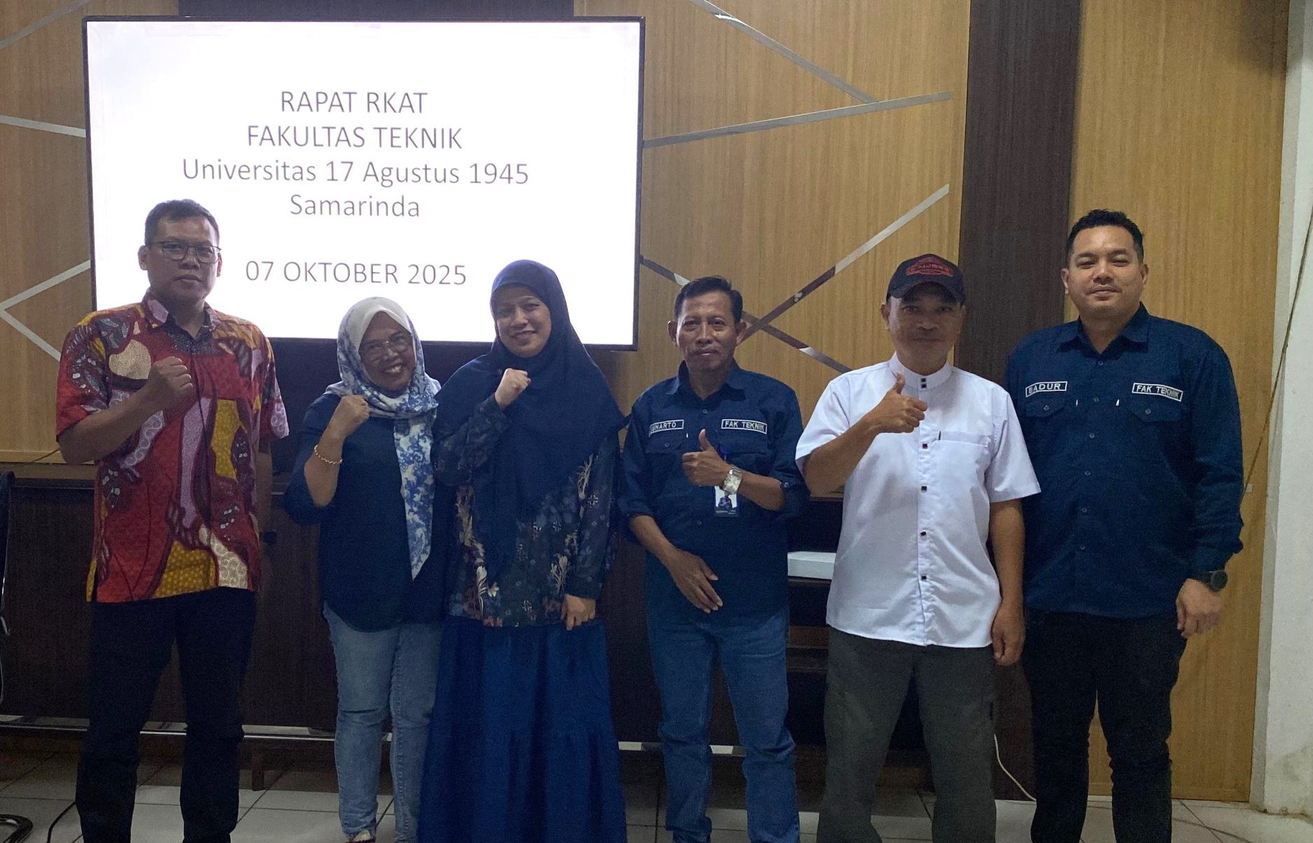 Fakultas Teknik Universitas 17 Agustus 1945 Samarinda menyelenggarakan Rapat Rencana Kerja dan Anggaran Tahunan (RKAT) pada 8 Oktober 2025 bertempat di Ruang Rapat Fakultas Teknik. Rapat ini dihadiri oleh Dekan Fakultas Teknik, Kaprodi Teknik Sipil, Kaprodi Arsitektur, Kaprodi Perencanaan Wilayah dan Kota (PWK), Kaprodi Magister Teknik Sipil, serta Kepala Laboratorium Teknik Sipil.